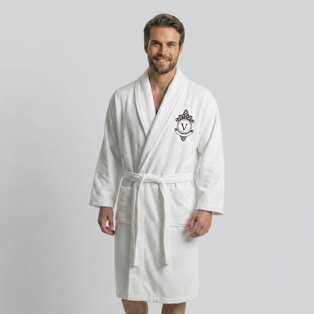 Conferă o notă individuală halatului prin personalizarea cu monograma numelui tău și alegerea culorii broderiei.